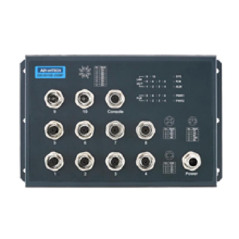 研華EKI-9510E-2GMPH 10個(gè)百兆M12 POE端口網(wǎng)管EN50155交換機(jī), 支持72/96/110 VDC供電