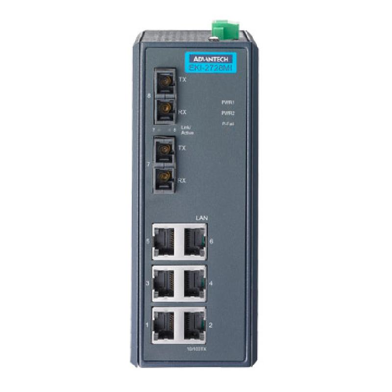 研華EKI-2728MI 6GX+2G多模光纖端口全千兆寬溫非網(wǎng)管型工業(yè)以太網(wǎng)交換機(jī)